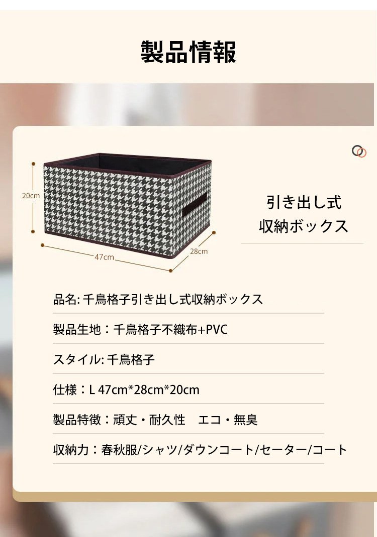 千鳥格子折りたたみ式収納ボックス